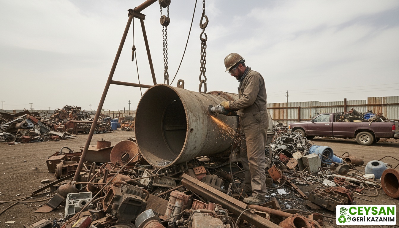 Tarsus hurdacılık süreci, göründüğünden çok daha organize ve karmaşık adımlardan oluşur. Her şey, atığın kaynağında (evler, fabrikalar, inşaat alanları) toplanmasıyla başlar. Toplanan hurdalar, daha sonra ayrıştırma tesislerine getirilir. Bu aşama, belki de sürecin en kritik noktasıdır. Malzemeler türlerine göre titizlikle ayrılır: demir, bakır, sarı (pirinç), alüminyum gibi metaller mıknatıslar ve uzman gözler tarafından ayrıştırılır; plastikler polimer türlerine göre sınıflandırılır; kâğıtlar ve kartonlar kalitelerine göre gruplandırılır. Ayrıştırma işleminden sonra malzemeler, taşımayı ve işlemeyi kolaylaştırmak için preslenerek balyalanır, kesilir veya parçalanır. Bu işlemlerden geçen hurdalar, artık çöp değil, demir-çelik fabrikaları, kâğıt fabrikaları veya plastik üretim tesisleri için hazır birer hammadde haline gelmiştir. Bu süreç, yoğun fiziksel emek, malzeme bilgisi ve piyasa takibi gerektiren bir uzmanlık alanıdır.